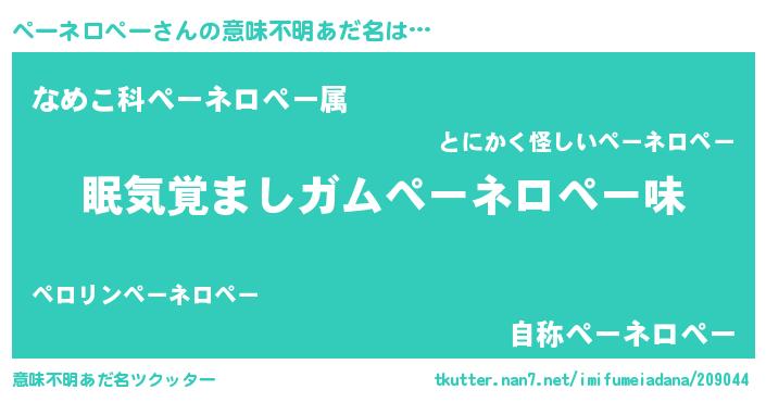| 男性向けラノベタイトル風あだ名 | 『ノーゲーム・ノーペーネロペー』 |