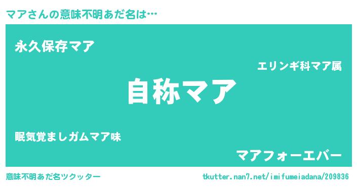 | ヘコむあだ名 | 『マア(苦笑)』『なまこ酢』『マアお』 |