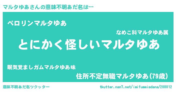 | 胡散臭い通販商品みたいなあだ名 | 『信頼と実績のサプリメント…その名も「マルタゆあ」』 |