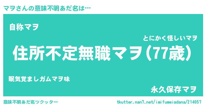 | ポケモン風あだ名 | 『マーヲイ』『マヲセウス』『ヒマヲ』 |