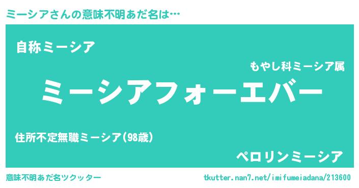 | 欧米人風あだ名 | 『ミーシアクリステル』 |