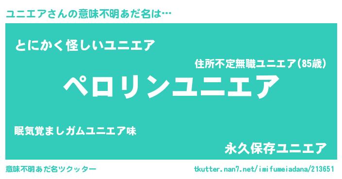 | 男性向けラノベタイトル風あだ名 | 『ユニエアの憂鬱』 |