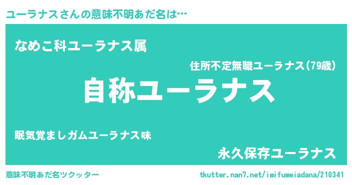 | 男性向けラノベタイトル風あだ名 | 『Re:ユーラナスから始める異世界生活』 |