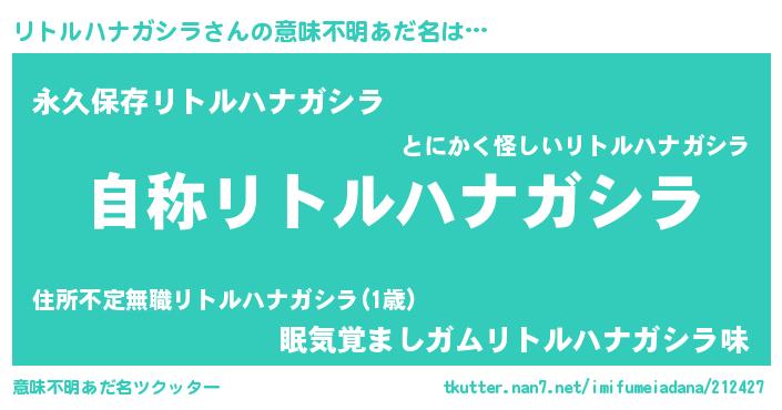 | ヘコむあだ名 | 『リトルハナガシラ(遠い目)』『リトぷりん』 |