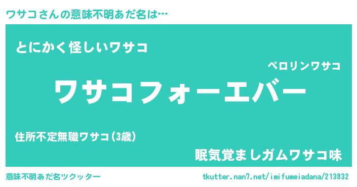 | 男性向けラノベタイトル風あだ名 | 『緋弾のワサコ』『ワサコの憂鬱』 |