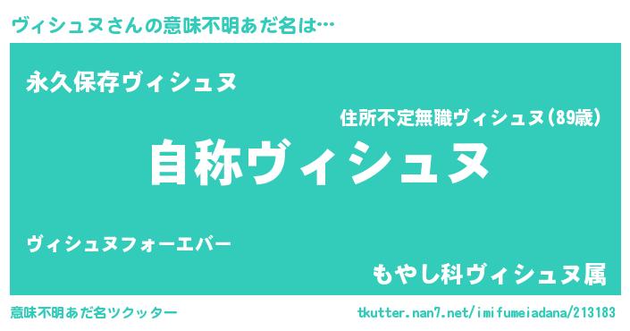 | 男性向けラノベタイトル風あだ名 | 『Re:ヴィシュヌから始める異世界生活』 |