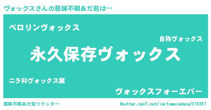 | 男性向けラノベタイトル風あだ名 | 『ヴォックスという概念が存在しない退屈な世界 』 |