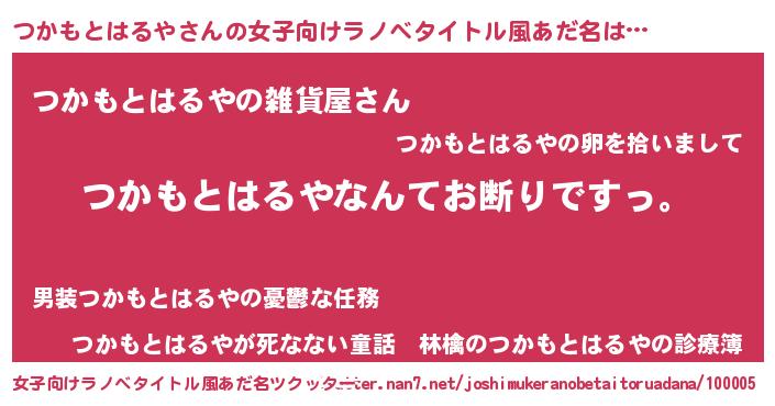 | 男性向けラノベタイトル風あだ名 | 『魔法科高校のつかもとはるや』 |