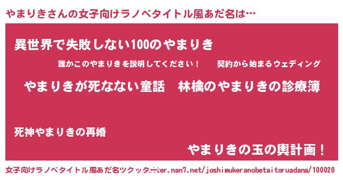 | 男性向けラノベタイトル風あだ名 | 『魔弾の王とやまりき』 |