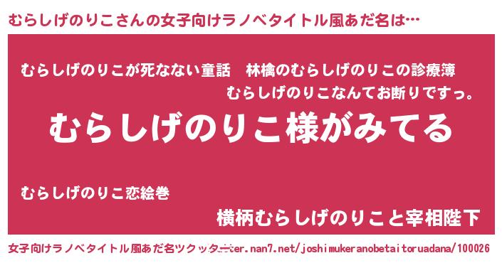 | 男性向けラノベタイトル風あだ名 | 『むらしげのりこの嫁は女の子じゃないと思った?』 |