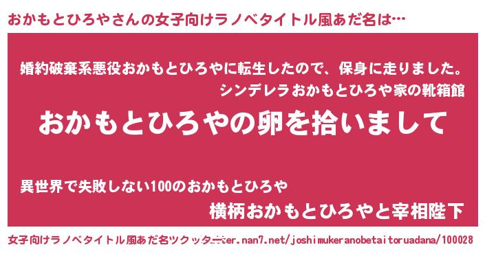 | 男性向けラノベタイトル風あだ名 | 『ダンジョンにおかもとひろやを求めるのは間違っているだろうか』 |
