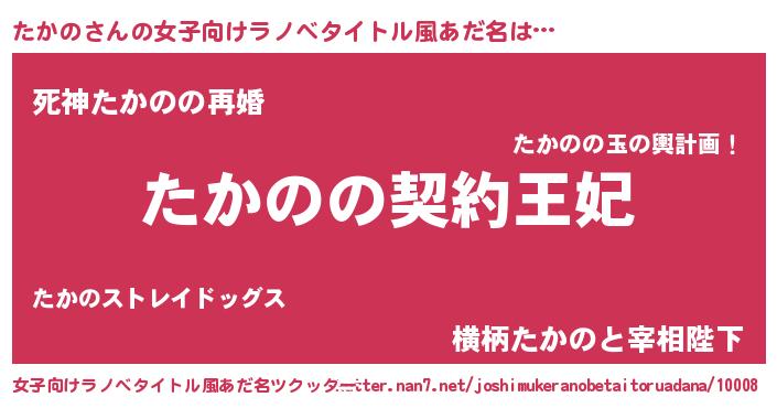 | 意味不明あだ名 | 『永久保存たかの』『つくし科たかの属』 |