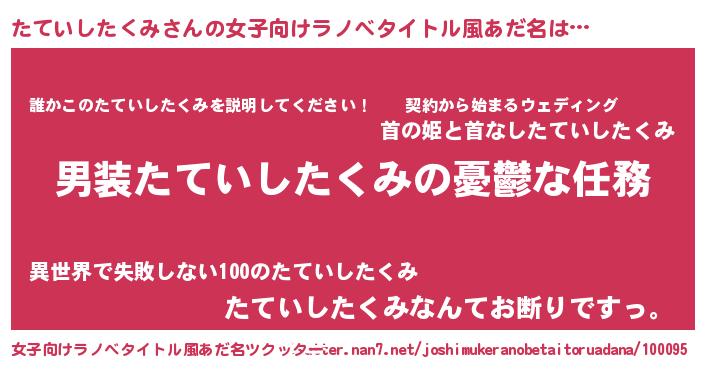 | 男性向けラノベタイトル風あだ名 | 『うちのたていしたくみが世界を掌握している!』 |