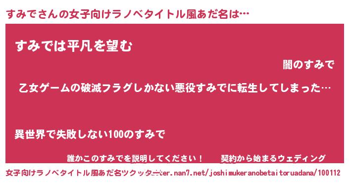| 男性向けラノベタイトル風あだ名 | 『この素晴らしい世界にすみでを!』 |