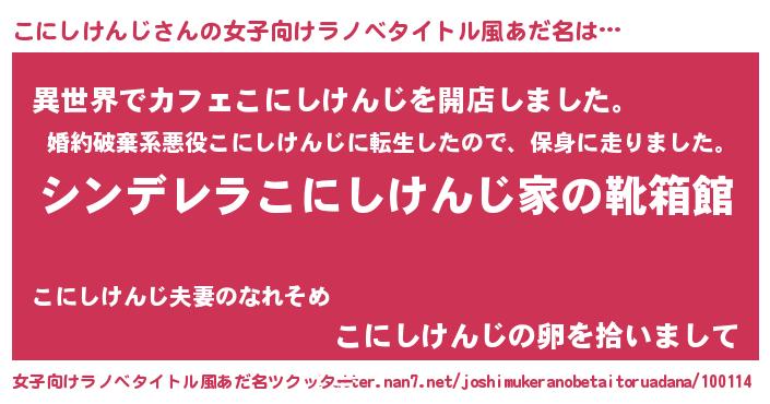 | ヘコむあだ名 | 『こにしけんじ(苦笑)』『こにお』 |