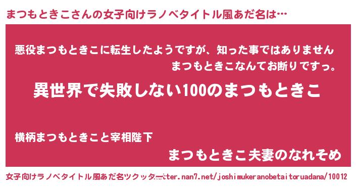 | 男性向けラノベタイトル風あだ名 | 『まつもときこという概念が存在しない退屈な世界 』 |