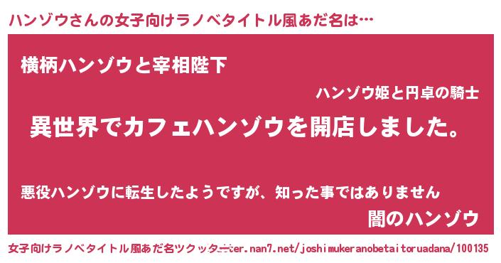 | ヘコむあだ名 | 『ハンゾウ(笑)』『ハンもー』 |
