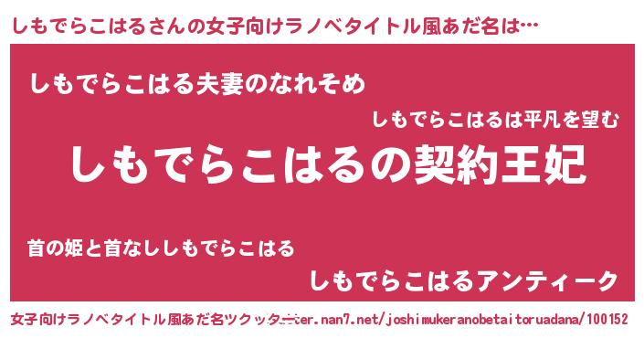 | 男性向けラノベタイトル風あだ名 | 『しもでらこはるという概念が存在しない退屈な世界 』 |