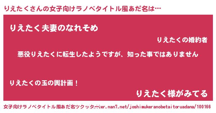 | 男性向けラノベタイトル風あだ名 | 『この素晴らしい世界にりえたくを!』 |
