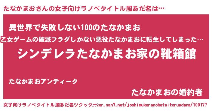 | 男性向けラノベタイトル風あだ名 | 『冴えないたなかまおの育てかた』 |