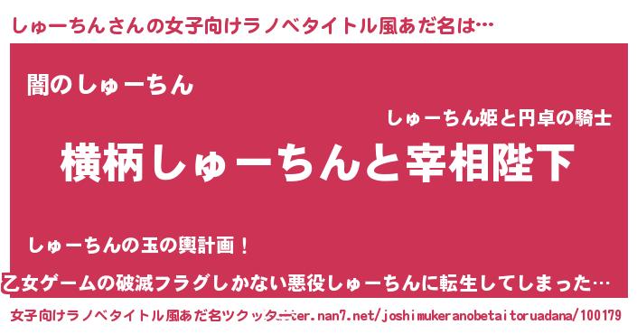 | 男性向けラノベタイトル風あだ名 | 『しゅーちんに滅ぼされるだけの簡単なお仕事です』 |