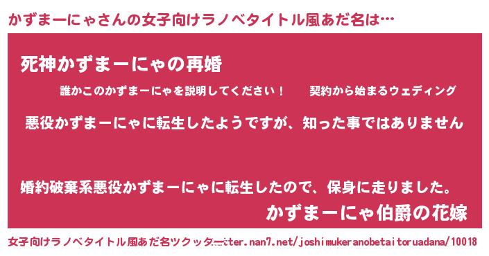 | 意味不明あだ名 | 『住所不定無職かずまーにゃ(71歳)』 |