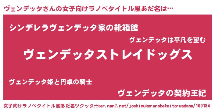 | 男性向けラノベタイトル風あだ名 | 『Re:ヴェンデッタから始める異世界生活』 |