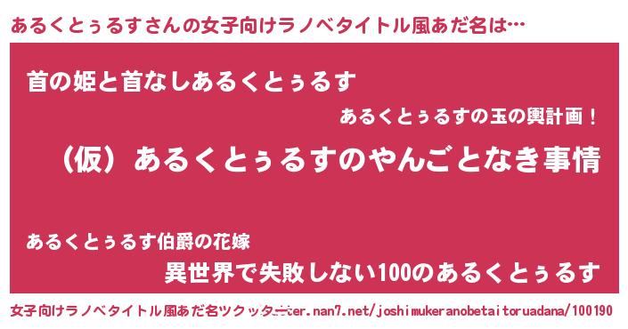 | 男性向けラノベタイトル風あだ名 | 『あるくとぅるすの憂鬱』 |