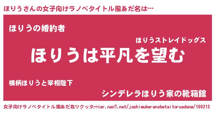| 男性向けラノベタイトル風あだ名 | 『ダンジョンにほりうを求めるのは間違っているだろうか』 |