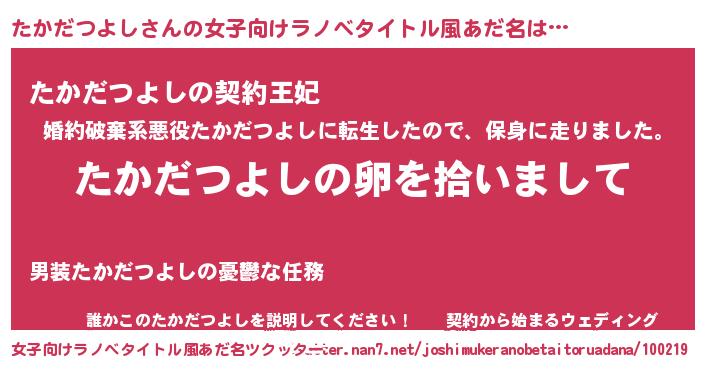 | 男性向けラノベタイトル風あだ名 | 『ダンジョンにたかだつよしを求めるのは間違っているだろうか』 |