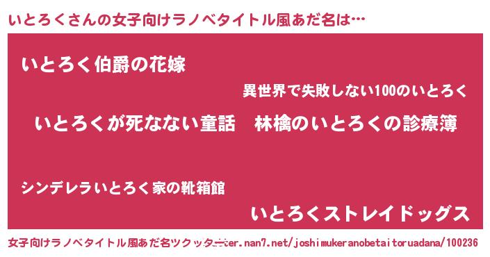 | 意味不明あだ名 | 『住所不定無職いとろく(53歳)』 |