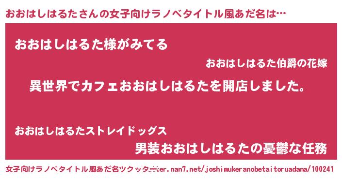 | 男性向けラノベタイトル風あだ名 | 『誰もが恐れるあのおおはしはるたが、ぼくの専属メイドになるようです。』 |