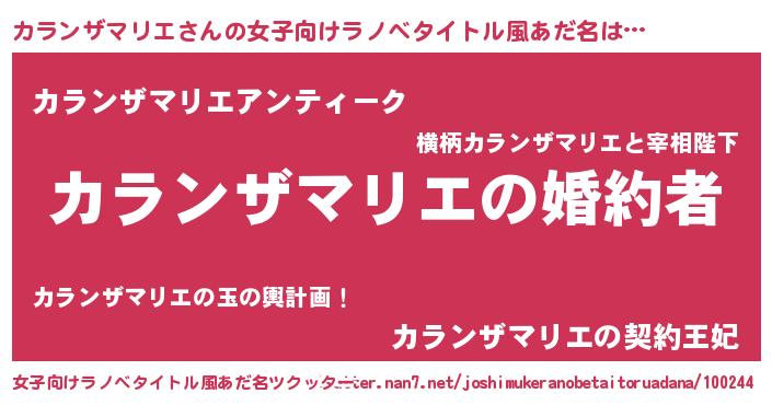 | 胡散臭い通販商品みたいなあだ名 | 『運命の人と巡り会える高級そうな皿…その名も「カランザマリエ」』 |