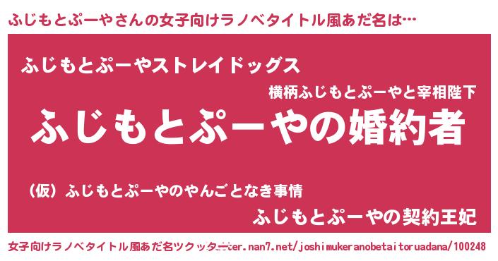 | 意味不明あだ名 | 『ふじもとぷーやフォーエバー』 |