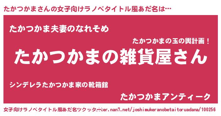 | 男性向けラノベタイトル風あだ名 | 『やはりたかつかまの青春ラブコメはまちがっている 』 |