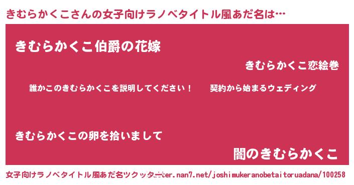 | 男性向けラノベタイトル風あだ名 | 『キムラカクコアートオンライン』 |