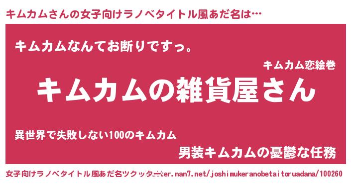 | 男性向けラノベタイトル風あだ名 | 『やはりキムカムの青春ラブコメはまちがっている 』 |
