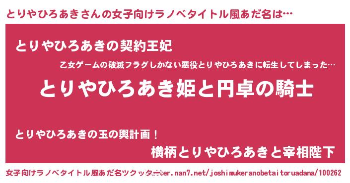 | 男性向けラノベタイトル風あだ名 | 『とりやひろあきの憂鬱』 |