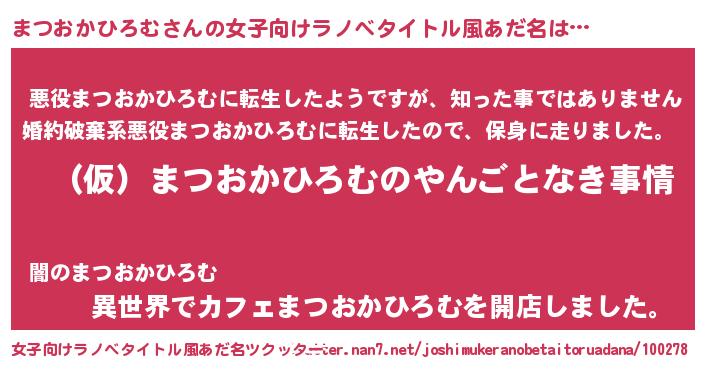 | 男性向けラノベタイトル風あだ名 | 『まつおかひろむの憂鬱』 |