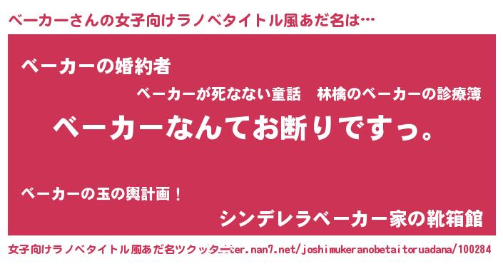 | 男性向けラノベタイトル風あだ名 | 『魔法科高校のベーカー』 |