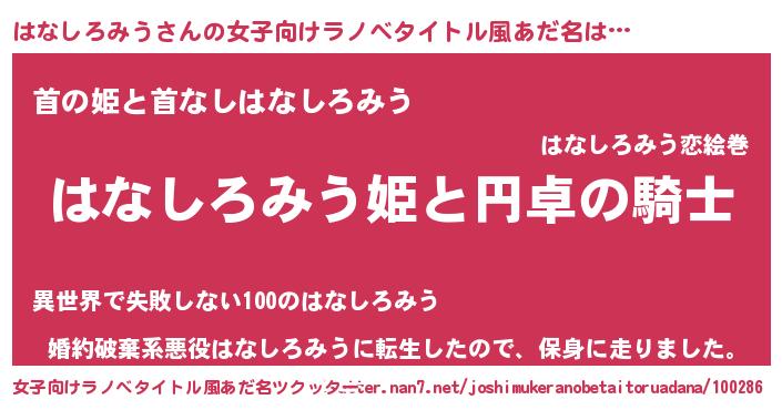 | 男性向けラノベタイトル風あだ名 | 『はなしろみうの憂鬱』 |