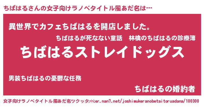 | 意味不明あだ名 | 『自称ちばはる』『永久保存ちばはる』 |