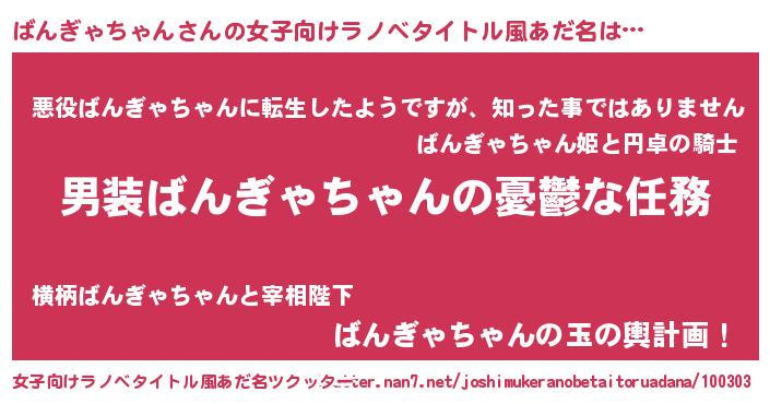 | 胡散臭い通販商品みたいなあだ名 | 『世界中を虜にした世界で10本だけ現存している希少なブランデー…その名も「ばんぎゃちゃん」』 |