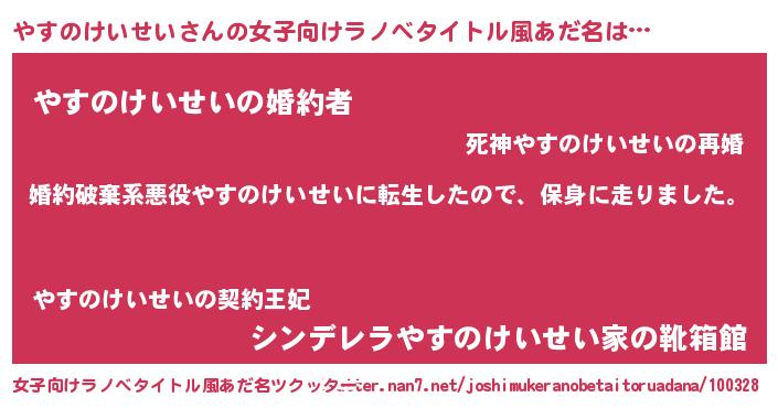 | 料理風あだ名 | 『やすのけいせいごはん』 |