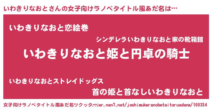 | 男性向けラノベタイトル風あだ名 | 『イワキリナオトアートオンライン』 |