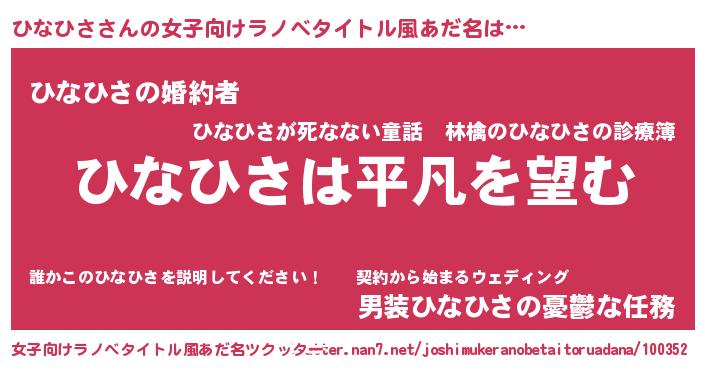 | 男性向けラノベタイトル風あだ名 | 『ダンジョンにひなひさを求めるのは間違っているだろうか』 |