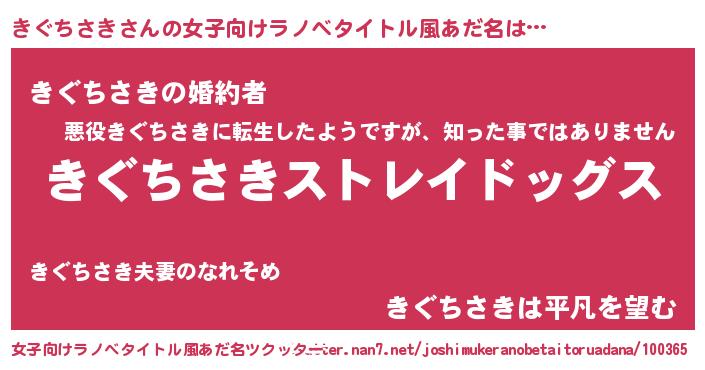 | 男性向けラノベタイトル風あだ名 | 『Re:きぐちさきから始める異世界生活』 |