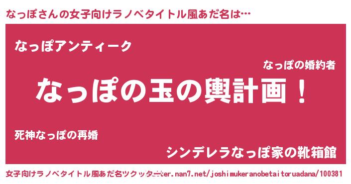 | 意味不明あだ名 | 『ヨモギ科なっぽ属』『自称なっぽ』 |
