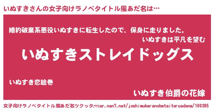 | 男性向けラノベタイトル風あだ名 | 『Re:いぬすきから始める異世界生活』 |