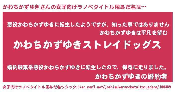 | 男性向けラノベタイトル風あだ名 | 『Re:かわちかずゆきから始める異世界生活』 |